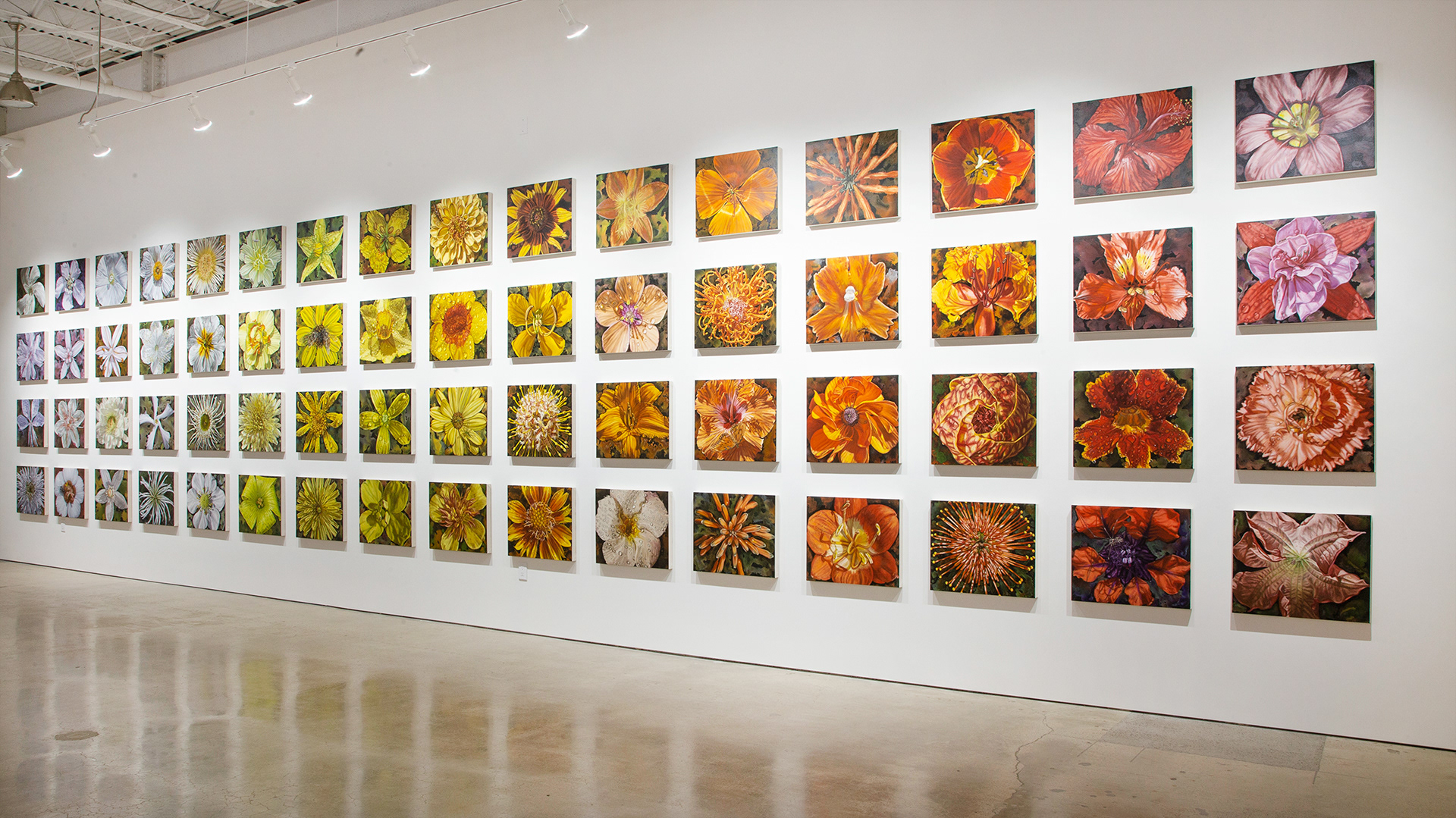 Created over the past four years, Color Field includes 128 equally scaled paintings of flowers, weeds, and native plants in Roberts’ garden surrounding her studio. Color Field refers to gradients found in nature which Roberts has ordered and classified by hue for the installation. The exhibition will open to the public on September 8 and will continue through November 6, 2021.